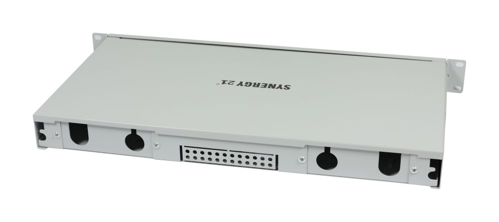 LWL-Patchpanel für 24xLC-Duplex-Buchsen, 19\"/1HE, ohne LC-Kupplungen, Lichtgrau, Synergy 21, 24x LWL-Kupplung,LC-Buchse/LC-Buchse, OM5, 50/125u Multimode, duplex, PVC, Keramikhülse, mit Flansch, Synergy 21