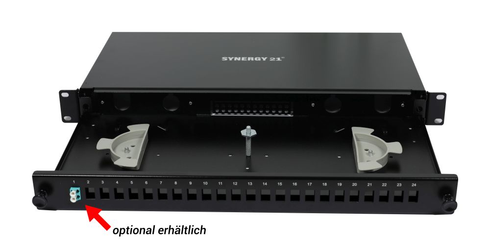 1x LWL-Patchpanel für 24xLC-Duplex-Buchsen, 19\"/1HE, ohne LC-Kupplungen, Schwarz, Synergy 21,