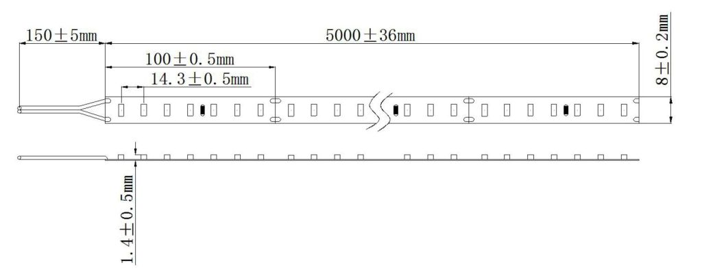 Number of LEDs: 70*2110SMD/m, total: 350LEDs