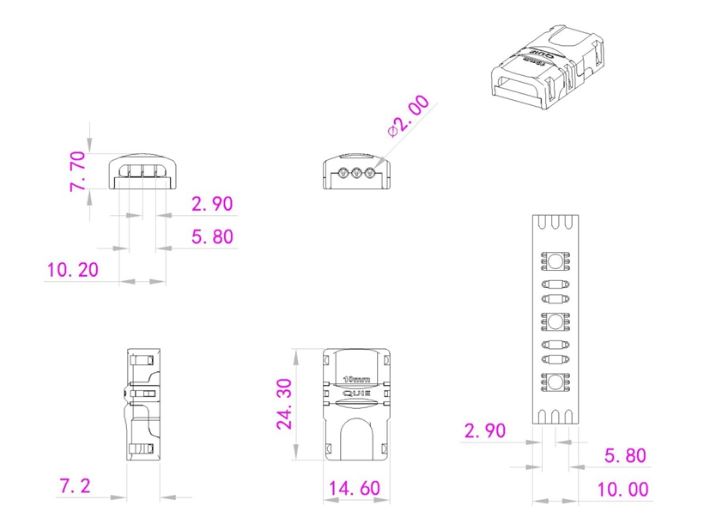 Synergy 21 LED FLEX Strip add. Easy Connect Strip to Wire no wire, 3 pin, DC3V-24V / 5A; for PCB width: 10mm Dual Colour Solderpad: 3