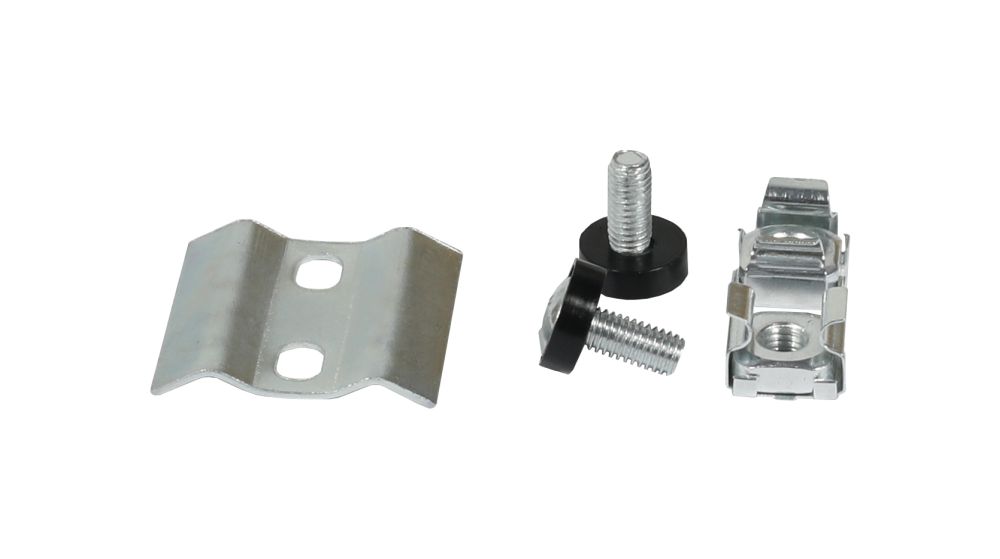 verchromte Bügel, mit 2x (M5 Zylinderkopfschraube l=11mm, Plastik Unterlegscheibe und Käfigmutter), Anschraublasche hat 2 Lang Löcher 4,9/7,1mm