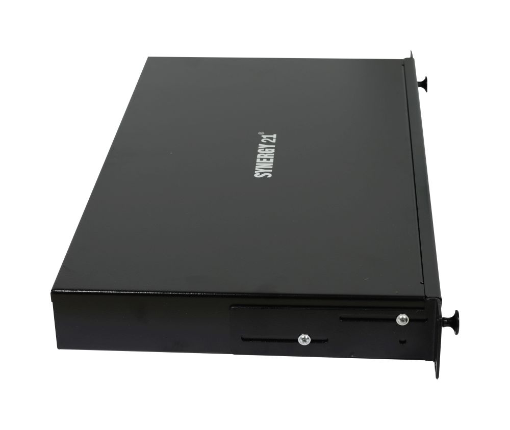 LWL-Patchpanel für 24xLC-Duplex-Buchsen, 19\"/1HE, ohne LC-Kupplungen, Schwarz, Synergy 21, 18x LWL-Kupplung,LC-Buchse/LC-Buchse, 9/125u Singlemode, duplex, PVC, Keramikhülse, mit Flansch, Synergy 21
